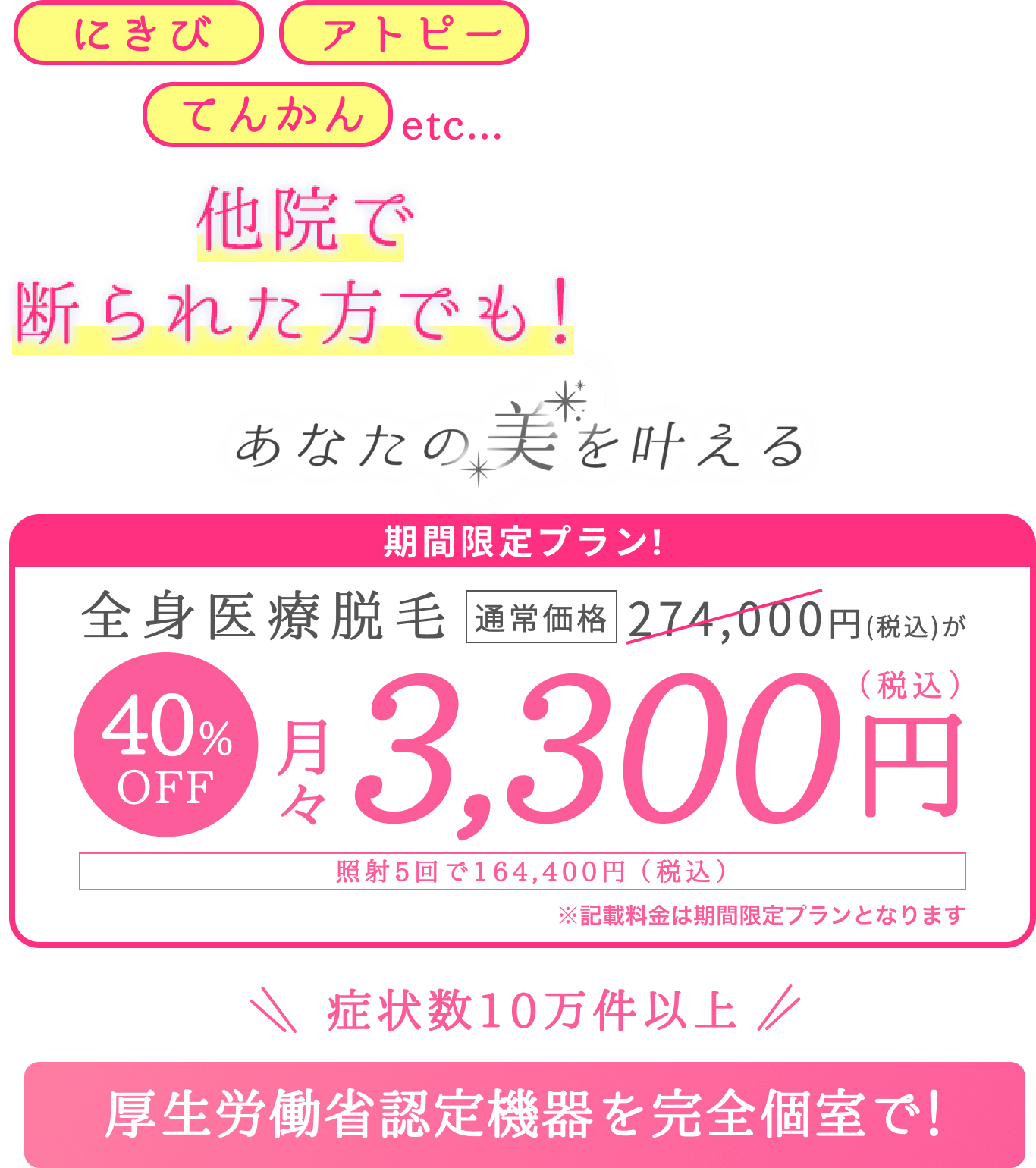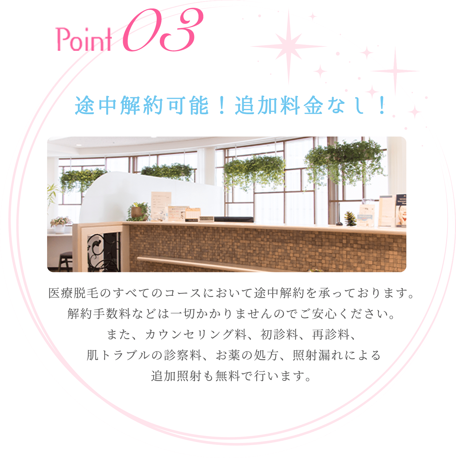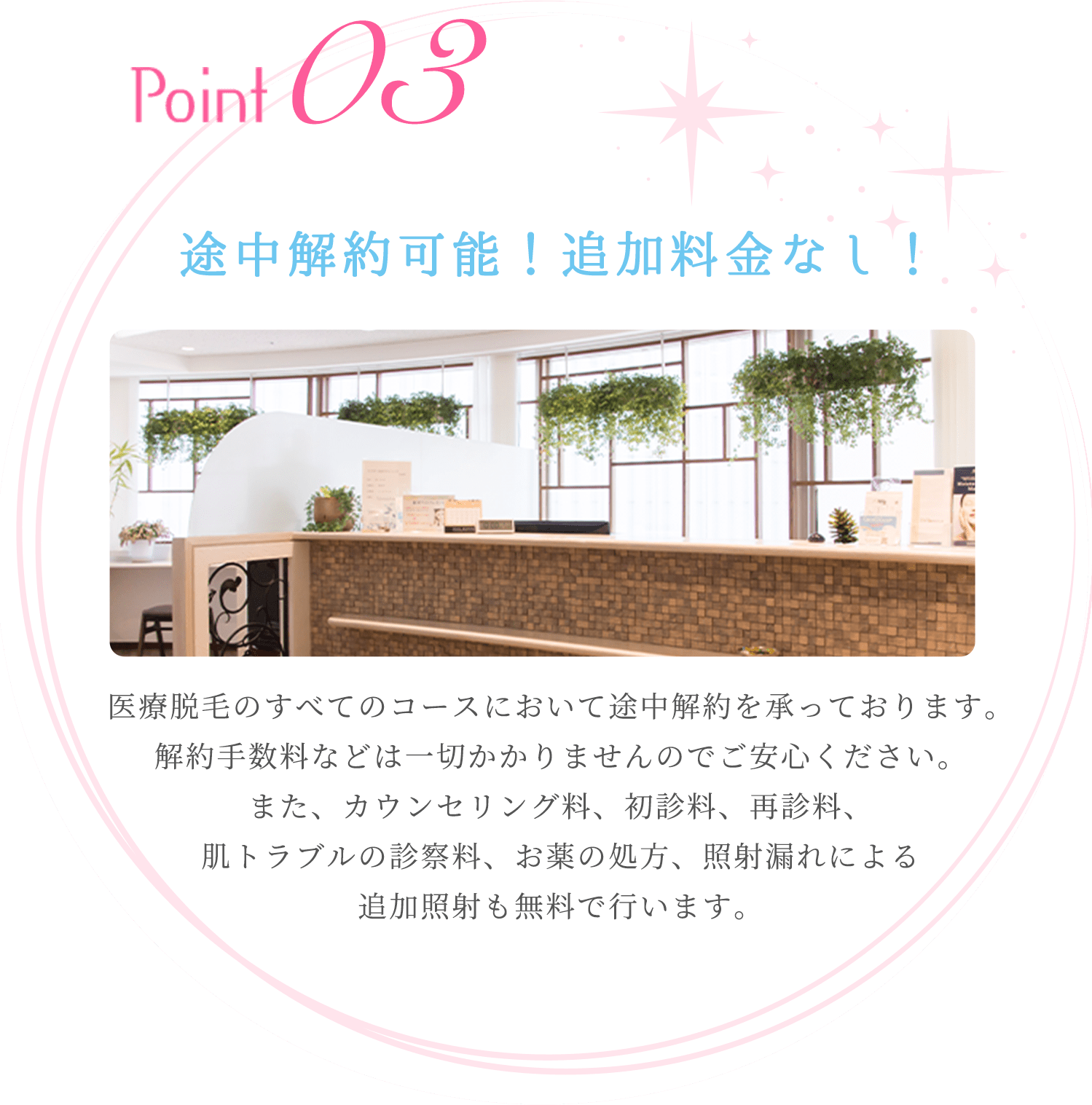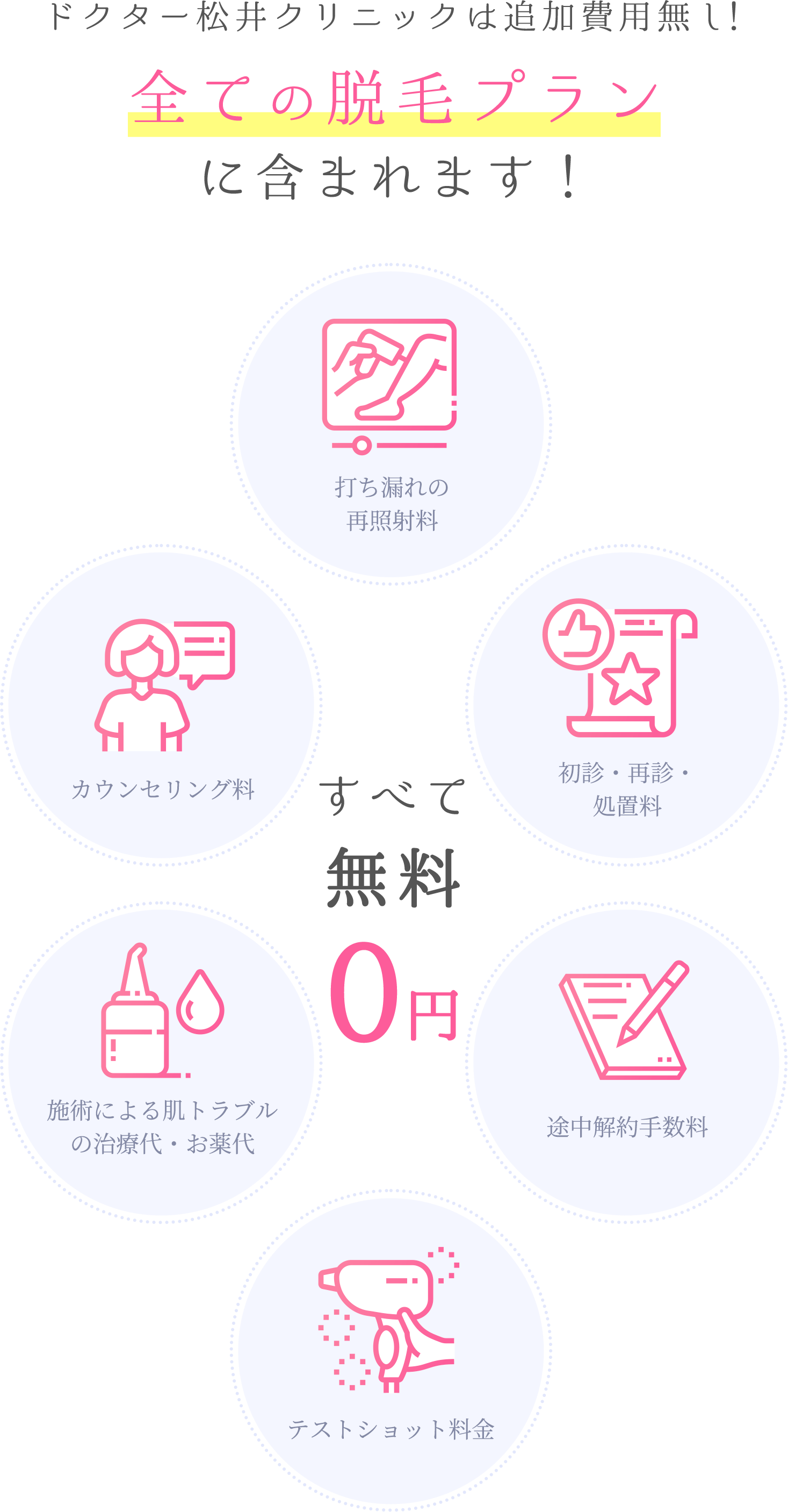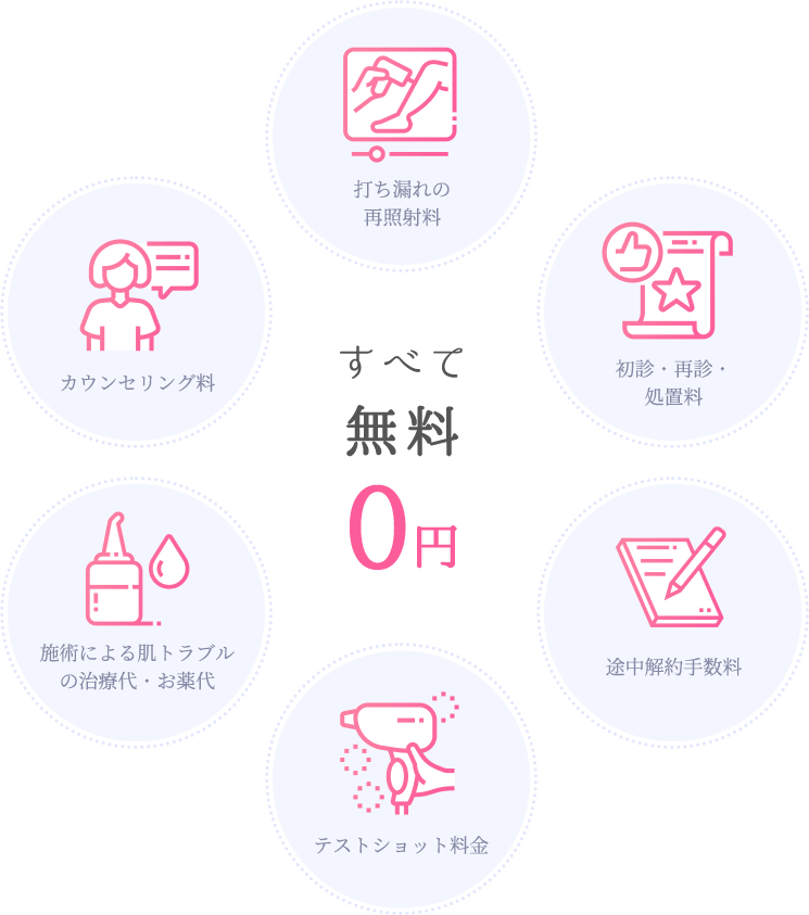 脱毛料金には検診料や薬品代も含まれており、安心してご利用いただけます。