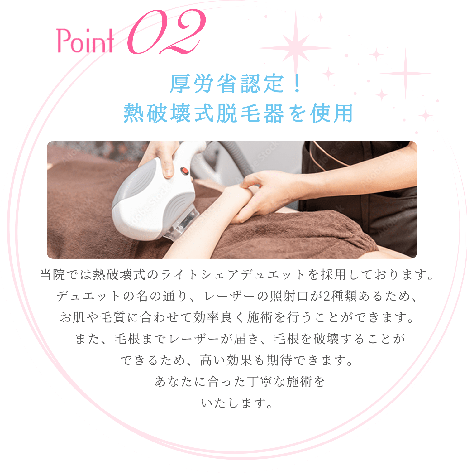 当院では効果と実績が圧倒的な熱破壊式のライトシェアデュエットを採用。