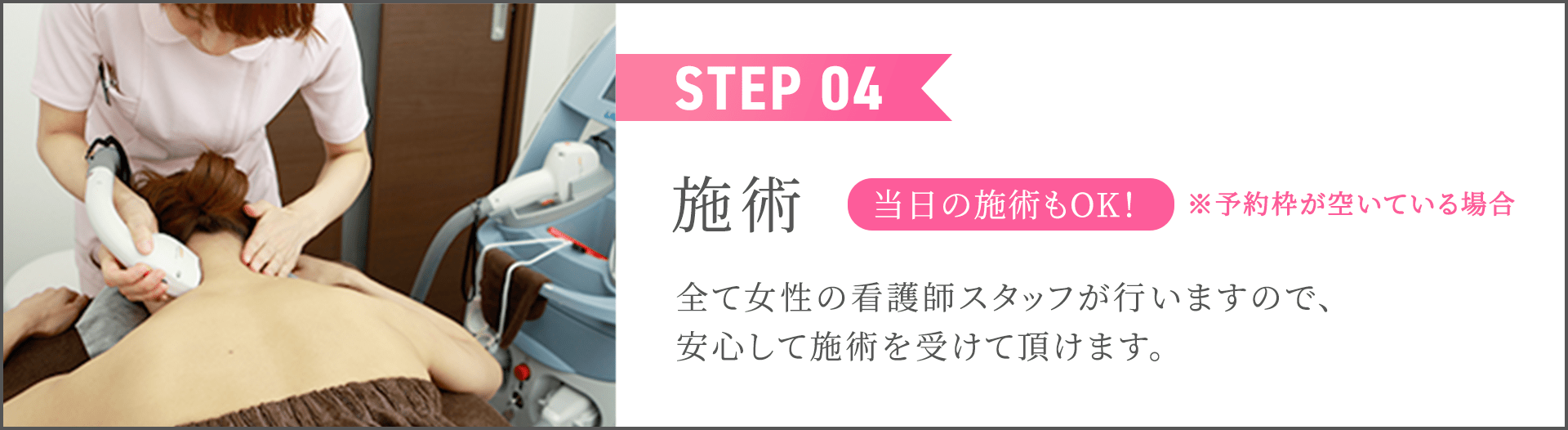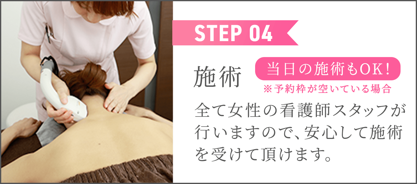 国家資格を持った専門の女性看護師が責任をもって施術いたします。